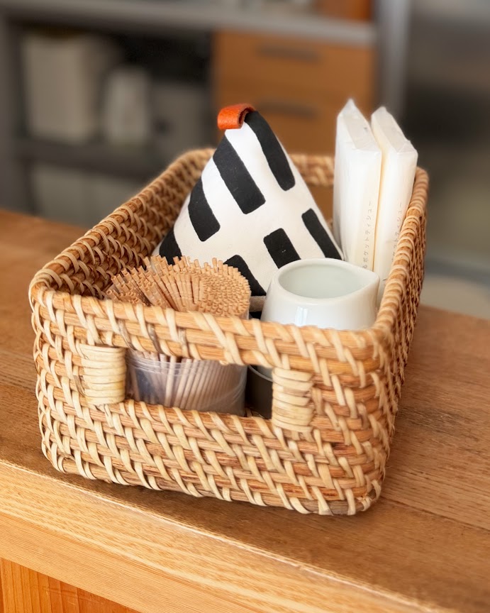 1.小さなサイズのラタンボックスは、素材感が可愛いくて“軽い”。