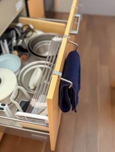 2.小サイズのタオルハンガーは、引出しや扉の開閉するときに“邪魔しない”