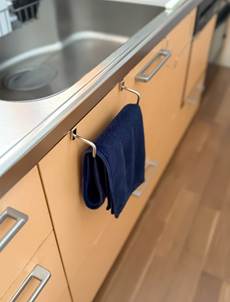 ただ、そのまま吊すと引出しや扉の大きさによっては、タオルが開閉の邪魔をしてしまうことがありました。